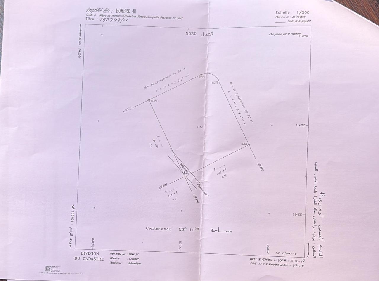 أرض ذات واجهتين في المدينة الرياضية مراكش. لمزيد من المعلومات أو ترتيب زيارة، لا تترددوا في الاتصال بنا هاتفيا....