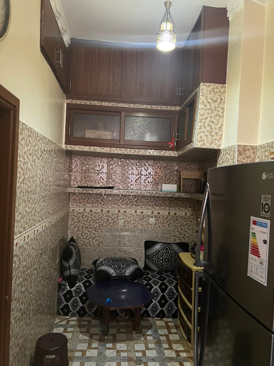 شقة بالدور الارضى. تطل على الشمس. لاكور لتعليق الغسيل لإنزال أضاحي العيد لعمل حديقة صغيرة ... مطبخ كبير مجهز بغرفة معيشة....
