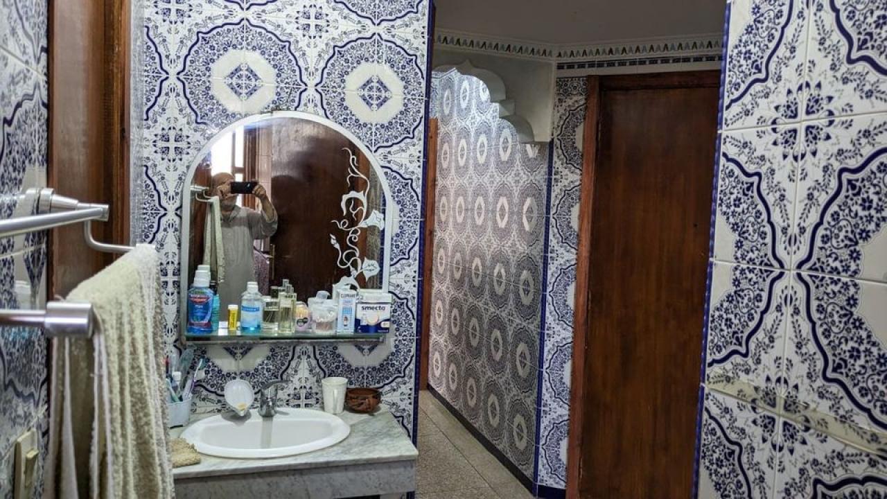 شقة للبيع بالدار البيضاء (ديال المستفيدين)، في الطابق الأول في بناية مكونة من 3 طوابق، شقة واحدة في كل طابق. المدخل لا يواجه الشار...