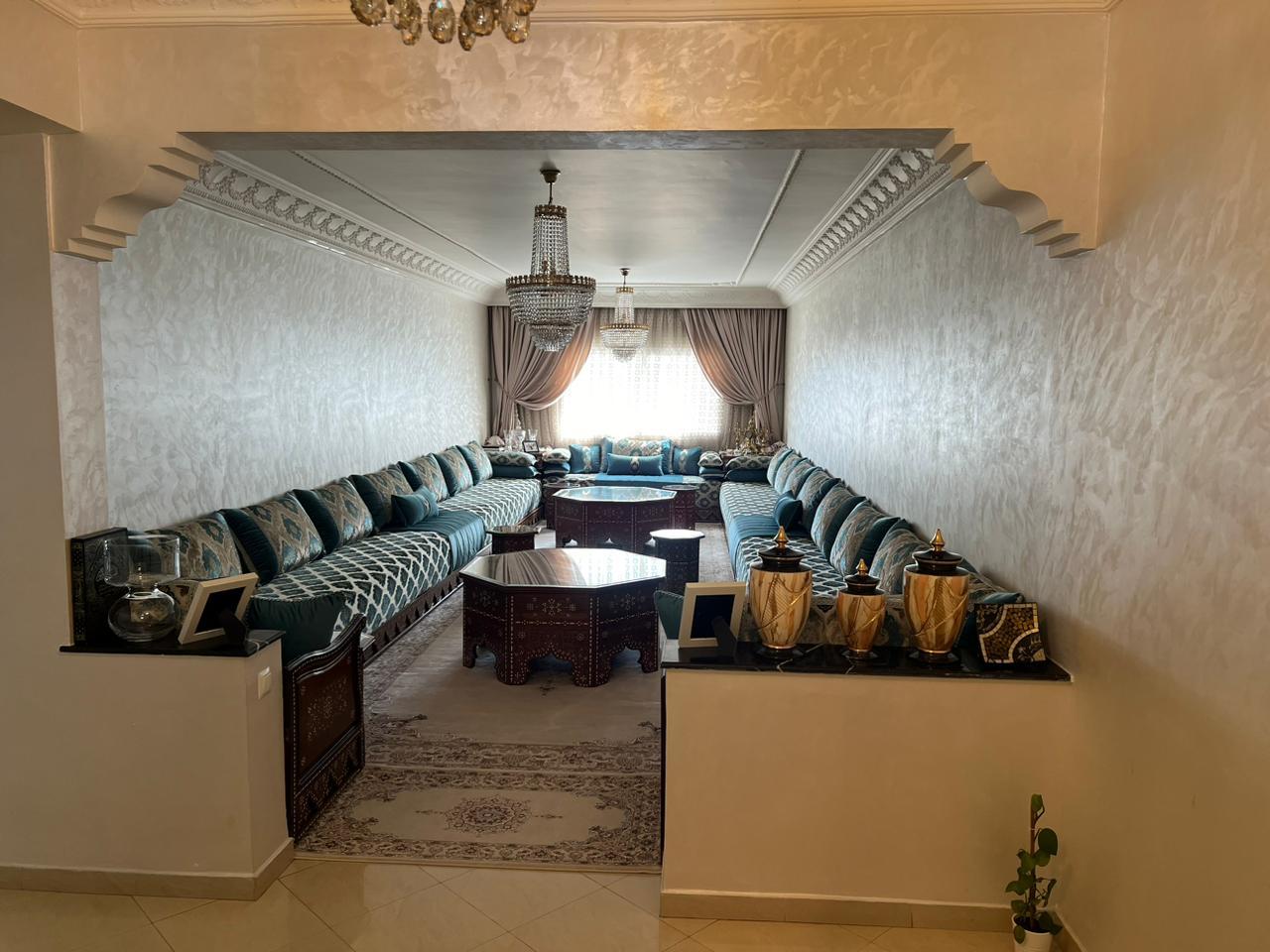 شقة مفروشة للبيع بالدار البيضاء بمساحة 125 م²، مكونة من 3 غرف نوم، 2 صالة، مطبخ و 2 حمام....