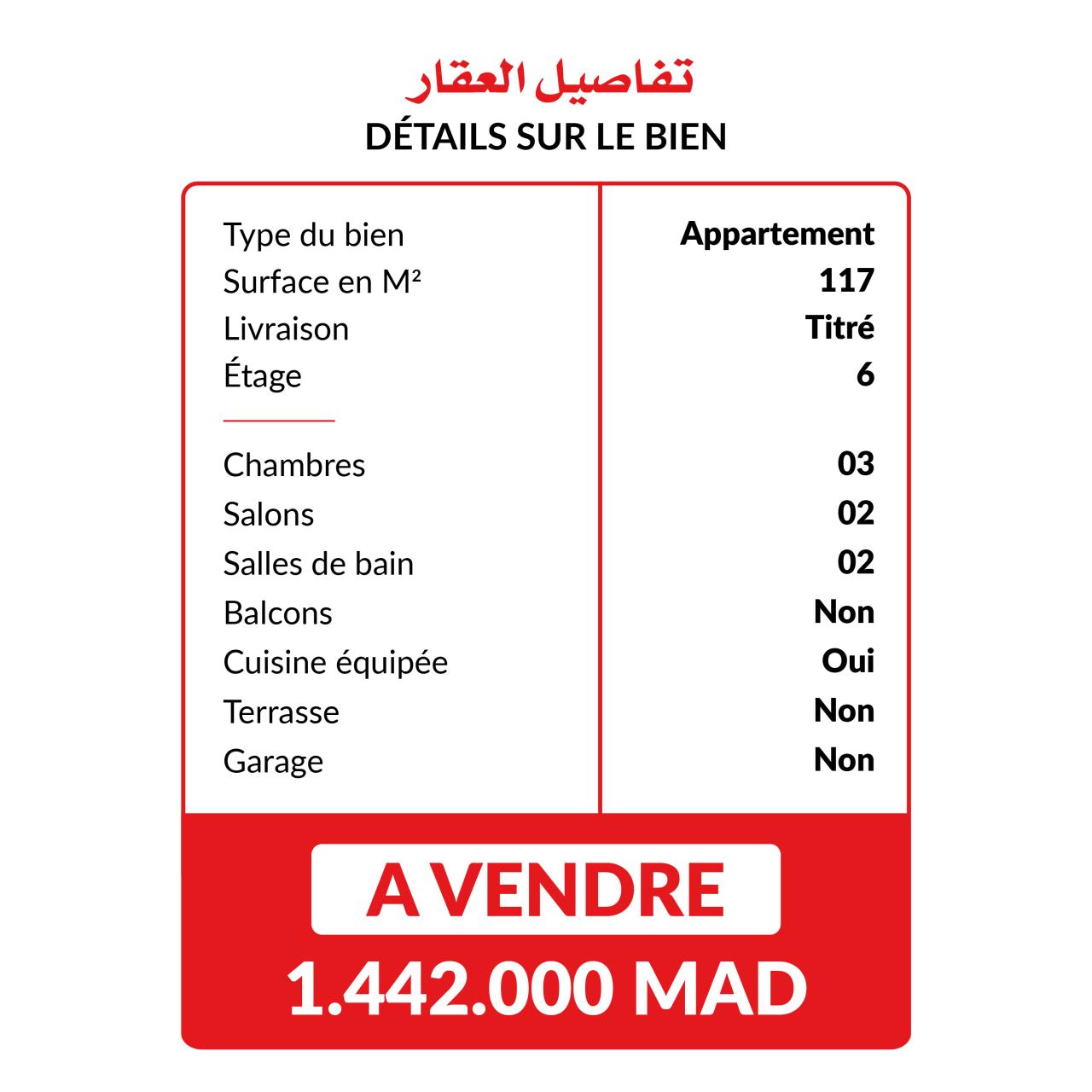 شقة للبيع في طنجة – الطابق السادس. شقة بمساحة 106 متر مربع للبيع في طنجة، تقع في الطابق السادس ضمن عمارة هادئة ومصانة جيدًا. ...