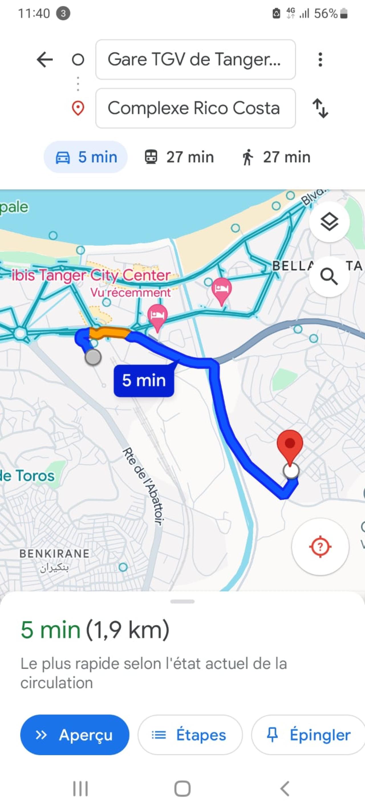 شقة مفروشة بالكامل للبيع في طنجة، شاملة الواي فاي والتكييف، تقع عند مدخل طنجة بالي، على بعد حوالي 5 دقائق فقط من محطة القطار والكو...