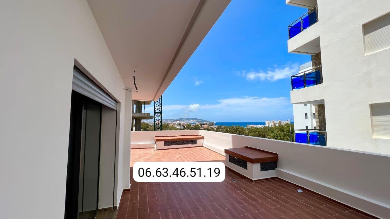 شقة فاخرة للبيع في طنجة مطلة على البحر تقع في مجمع مراقب بالكاميرات مع حمام سباحة . مكونة من 4 غرف نوم، 1 صالون ، 1 مطبخ مجهز. مسا...