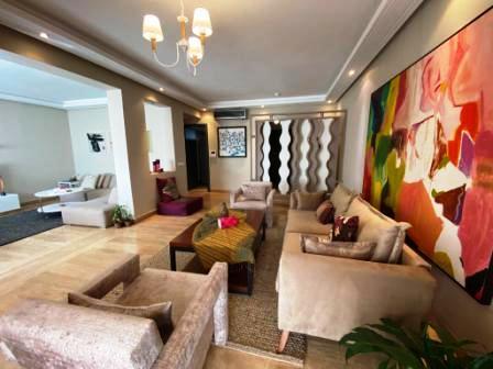 M280 - كراء شقة مفروشة جميلة بالرباط حي الرياض (بريستيجيا) - الطابق الرابع - المساحة الإجمالية 170 م2 - غرفة معيشة مزدوجة مع منطقة...