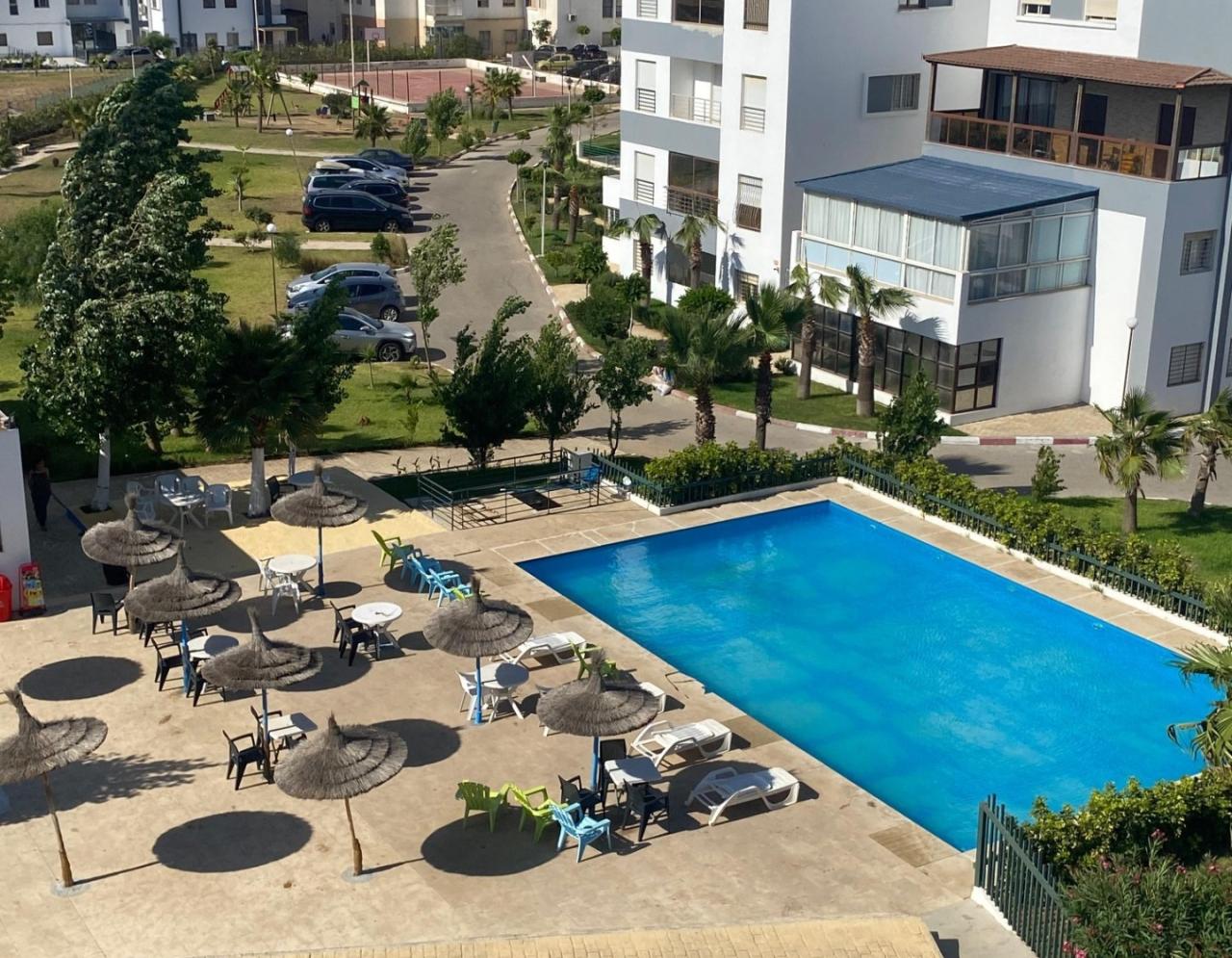 شقة مفروشة بمساحة 110 متر مربع للكراء بمدينة طنجة، تقع في الطابق الأرضي ضمن إقامة مغلقة. توفر الشقة إطلالة مفتوحة على المسبح وت...
