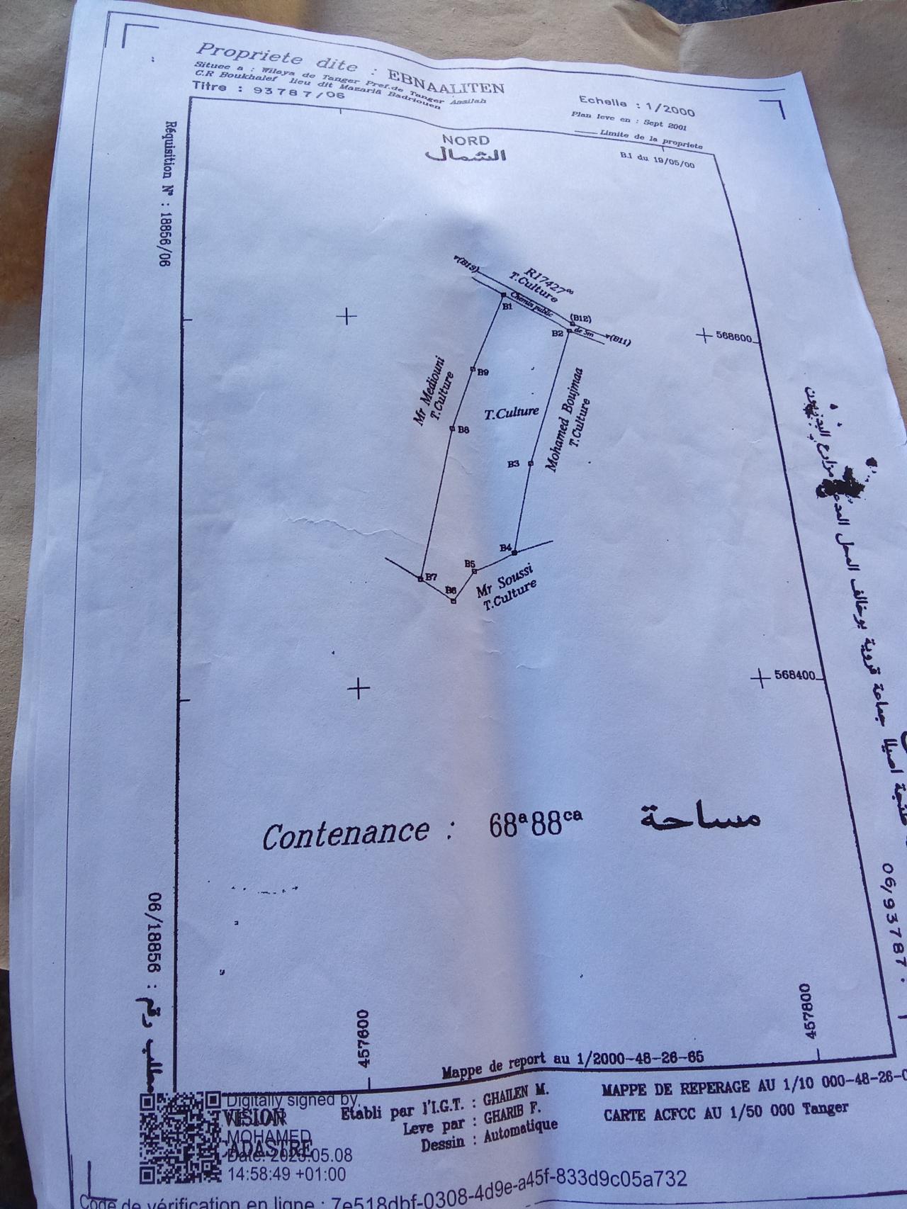 Land 6888 m² Tanger « Aharrarine »
