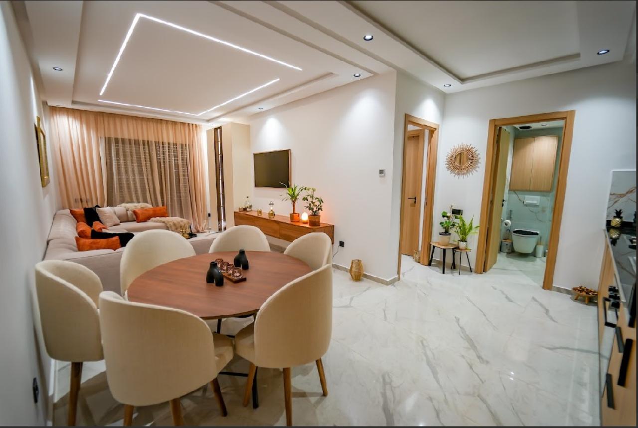Furnished family apartment for rent in Marrakech for daily stays, ideally located near the Souk Al Khmiss tourist village. It is a...