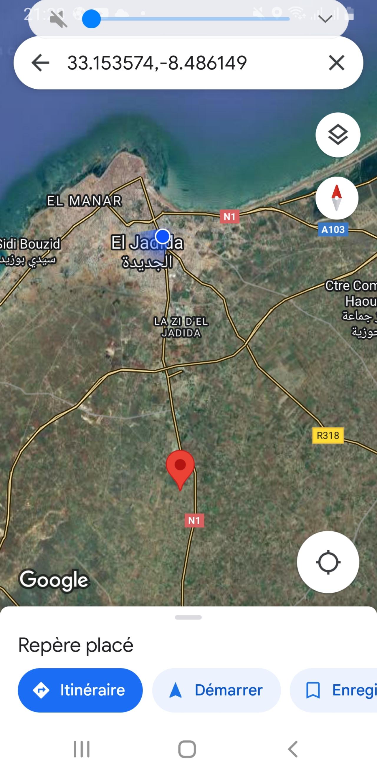 Land for sale with a villa inside, 125 meters in El Jadida, just 2 kilometers. It has a paved road, fully equipped with irrigation...