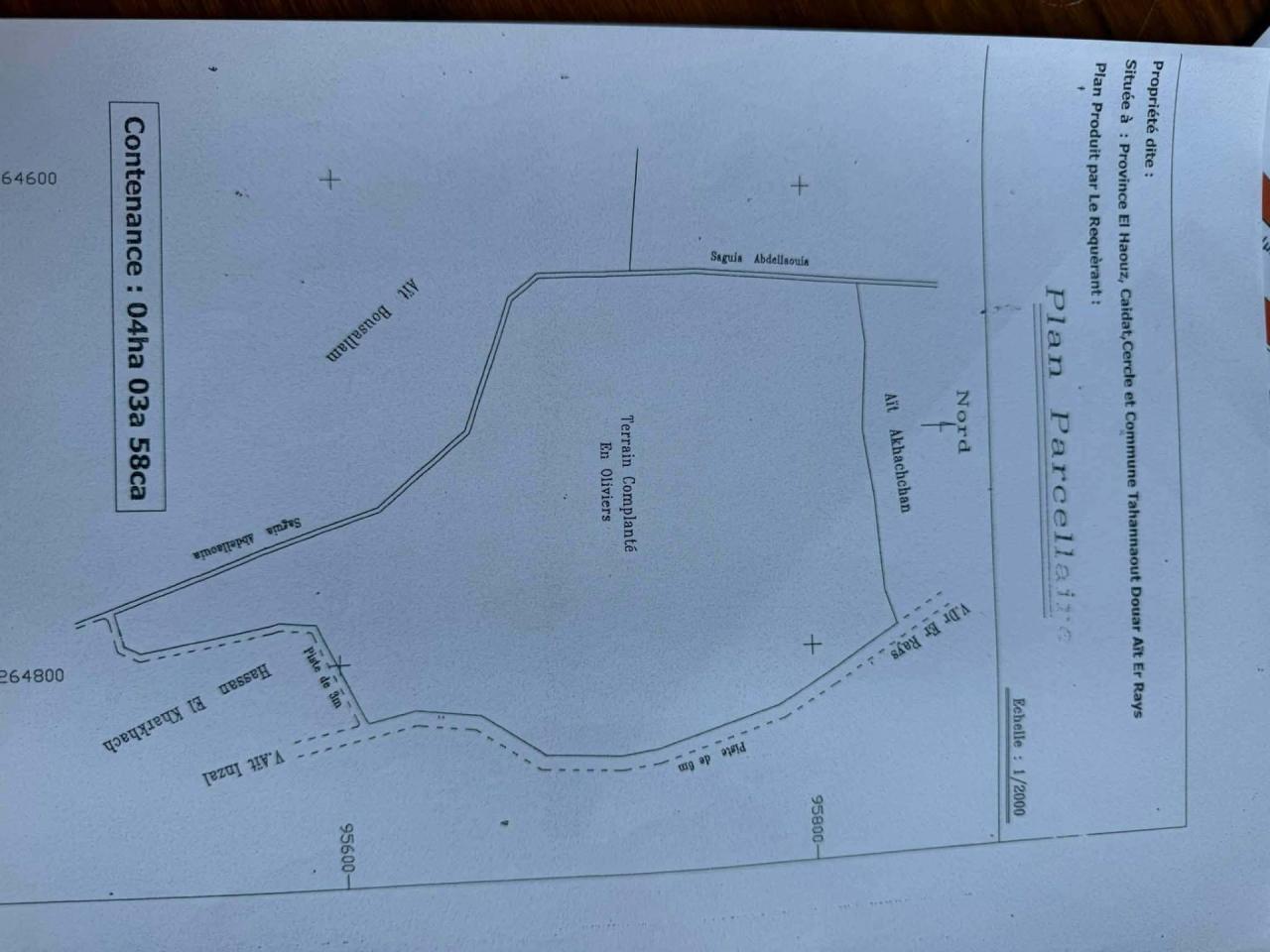 Agricultural land for sale in Tnine Ourika (near the village of Laàgreb) with an area of 5,500 m² planted with 55 flowering oliv...