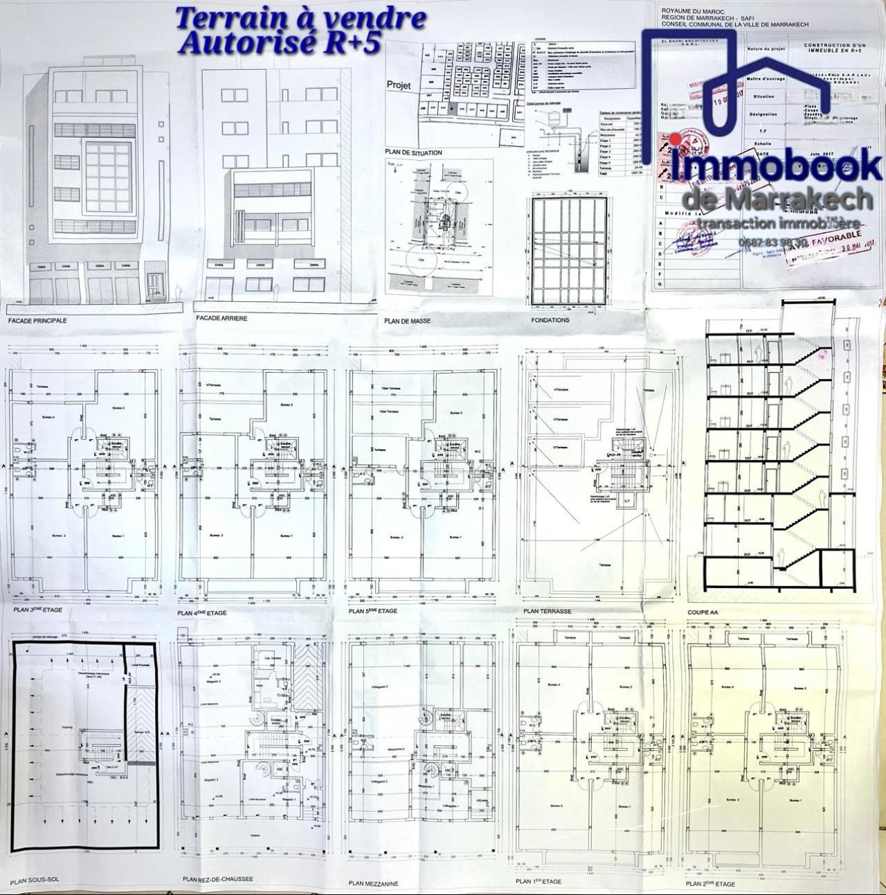 Land for sale in Marrakech, ideal for the construction of a 5-story office building. Features: * Area: 300 m² * Building Pe...