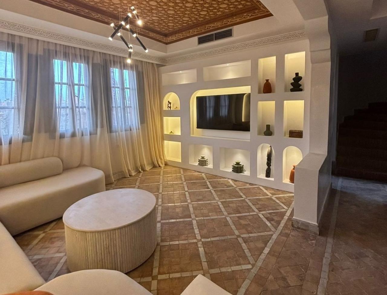 Appartement duplex meublé à louer à la journée à Marrakech, composé de deux chambres, deux salles de bain, un salon et un espace e...