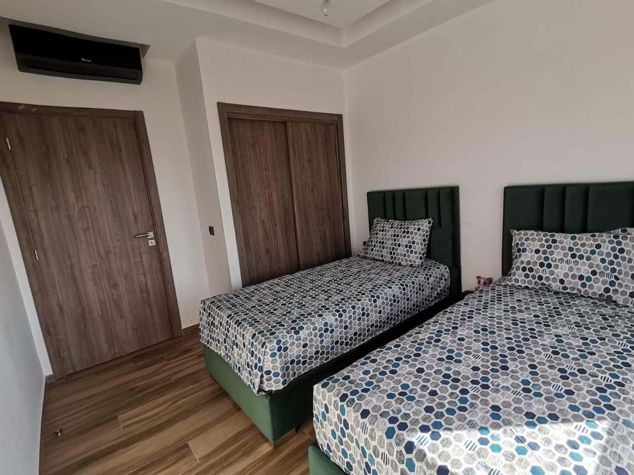 Je propose à la location mon appartement situé dans le quartier Dar Bouazza, région de Casablanca, au 2ème étage d'un immeuble sécurisé avec ascenseur. Caractéristiques : - Meublé et équipé - 2 chambres - 2 salles de bain (dont une avec douchette) - Cuisine équipée - Salon spacieux - Buanderie - Terrasse Proche des commerces, restaurants et cafés. Pour plus d'informations ou pour organiser une visite, veuillez me contacter par téléphone.