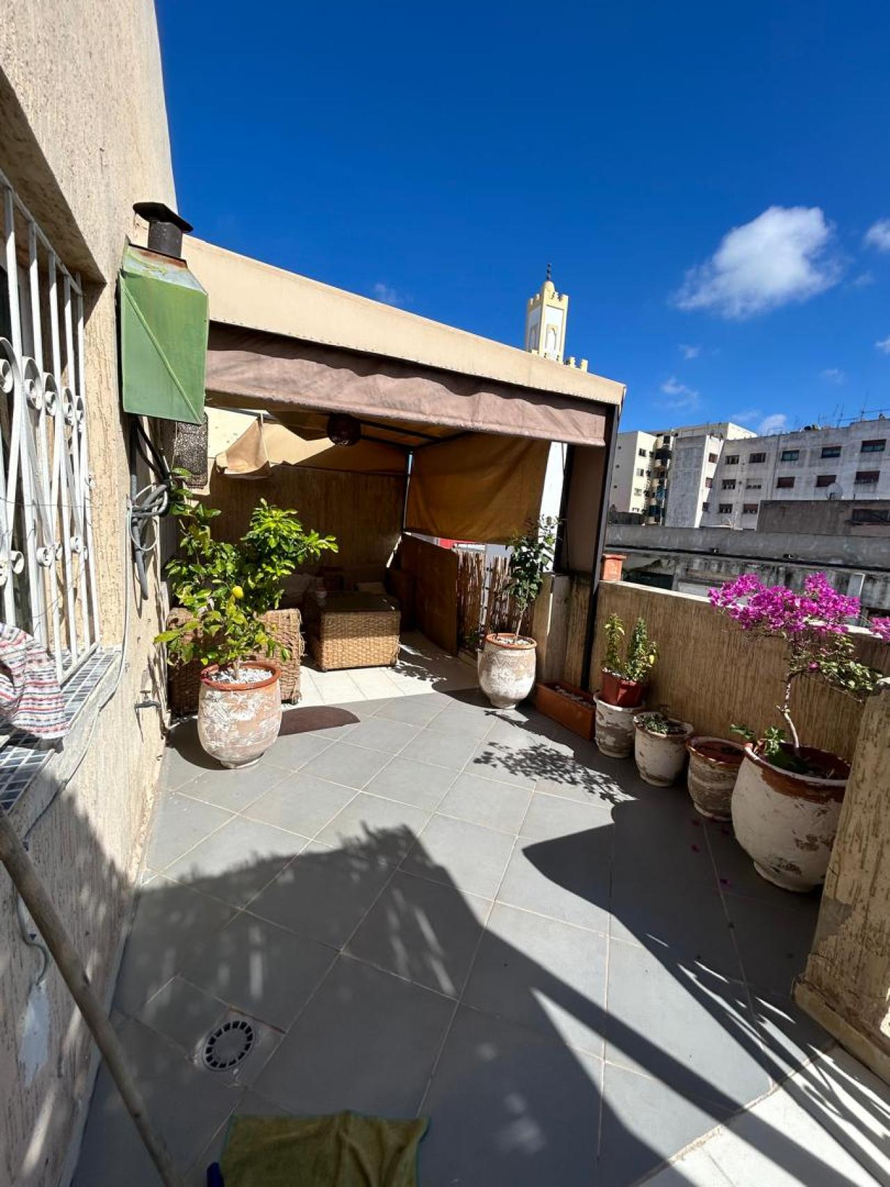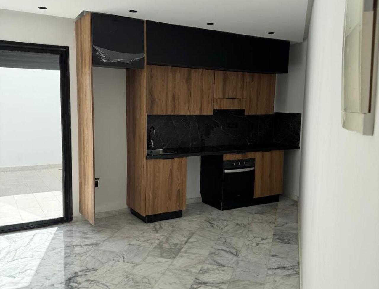 Studio neuf et lumineux en location longue durée à Casablanca, d’une superficie totale de 54 m² (37 m² intérieur + 17 m² de terras...