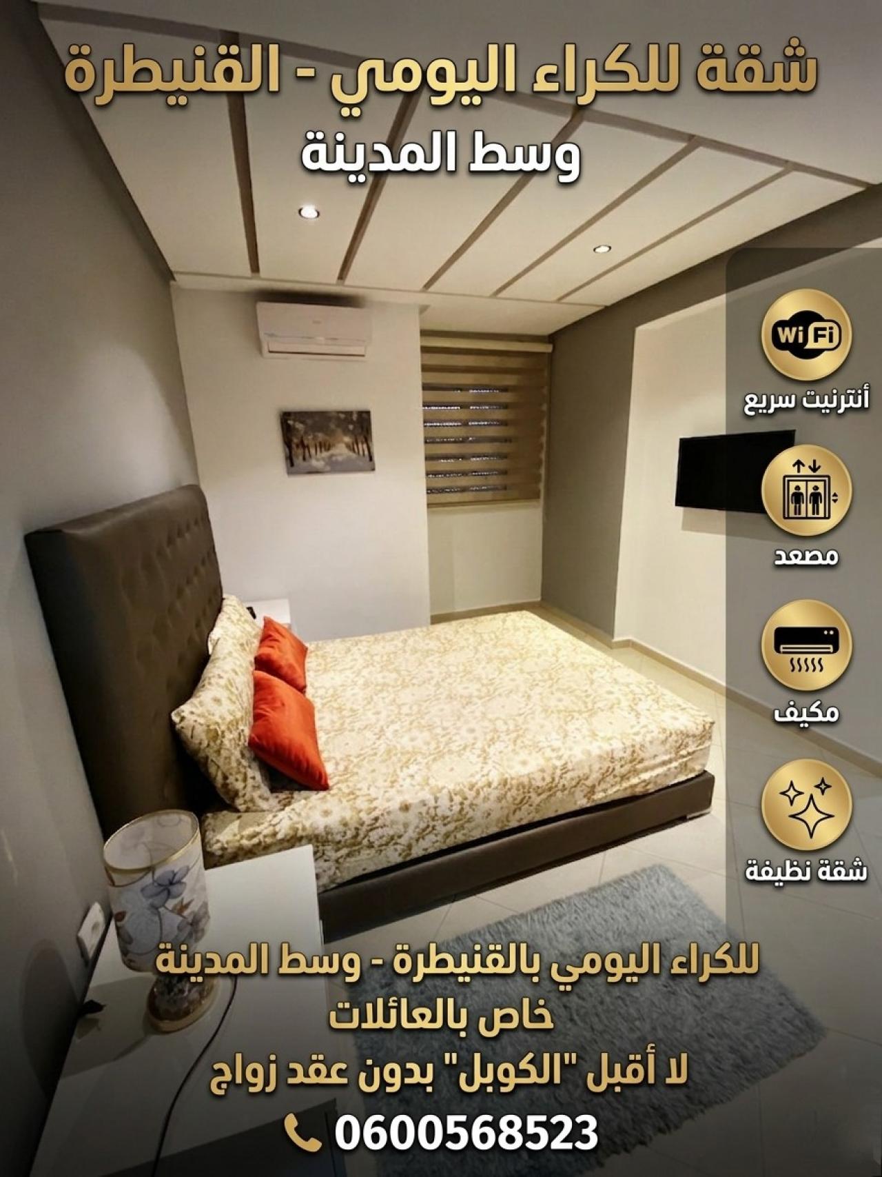 Appartement propre et entièrement meublé à louer à la journée à Kénitra, idéalement situé en plein centre-ville, à proximité de to...