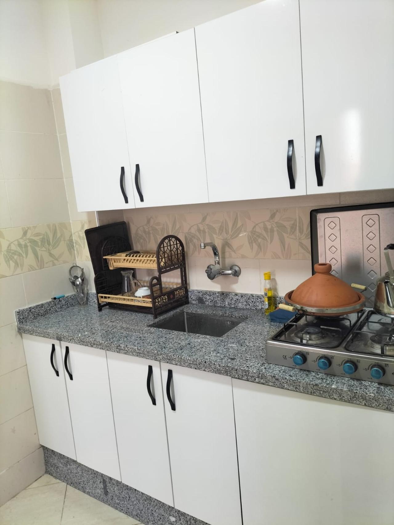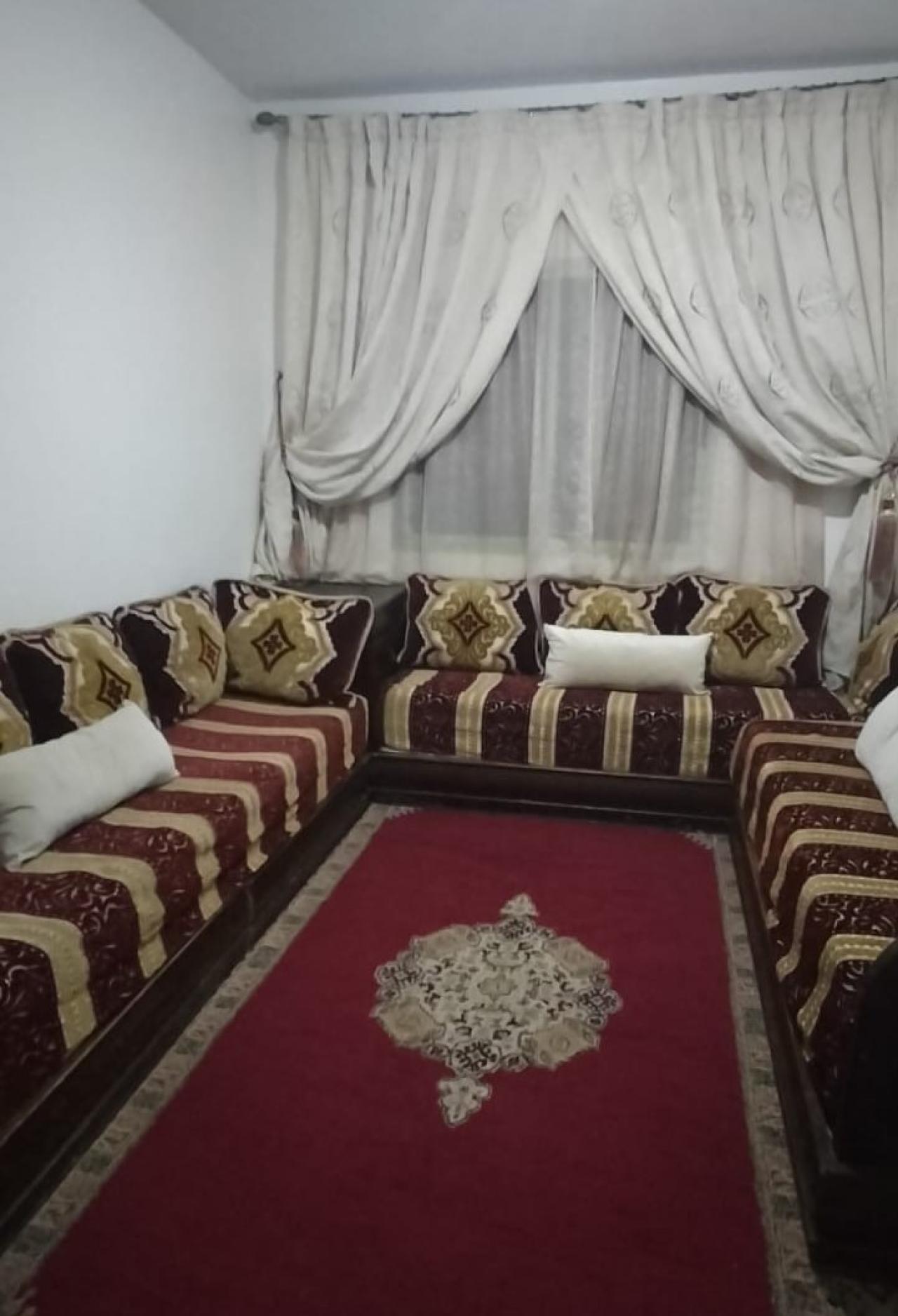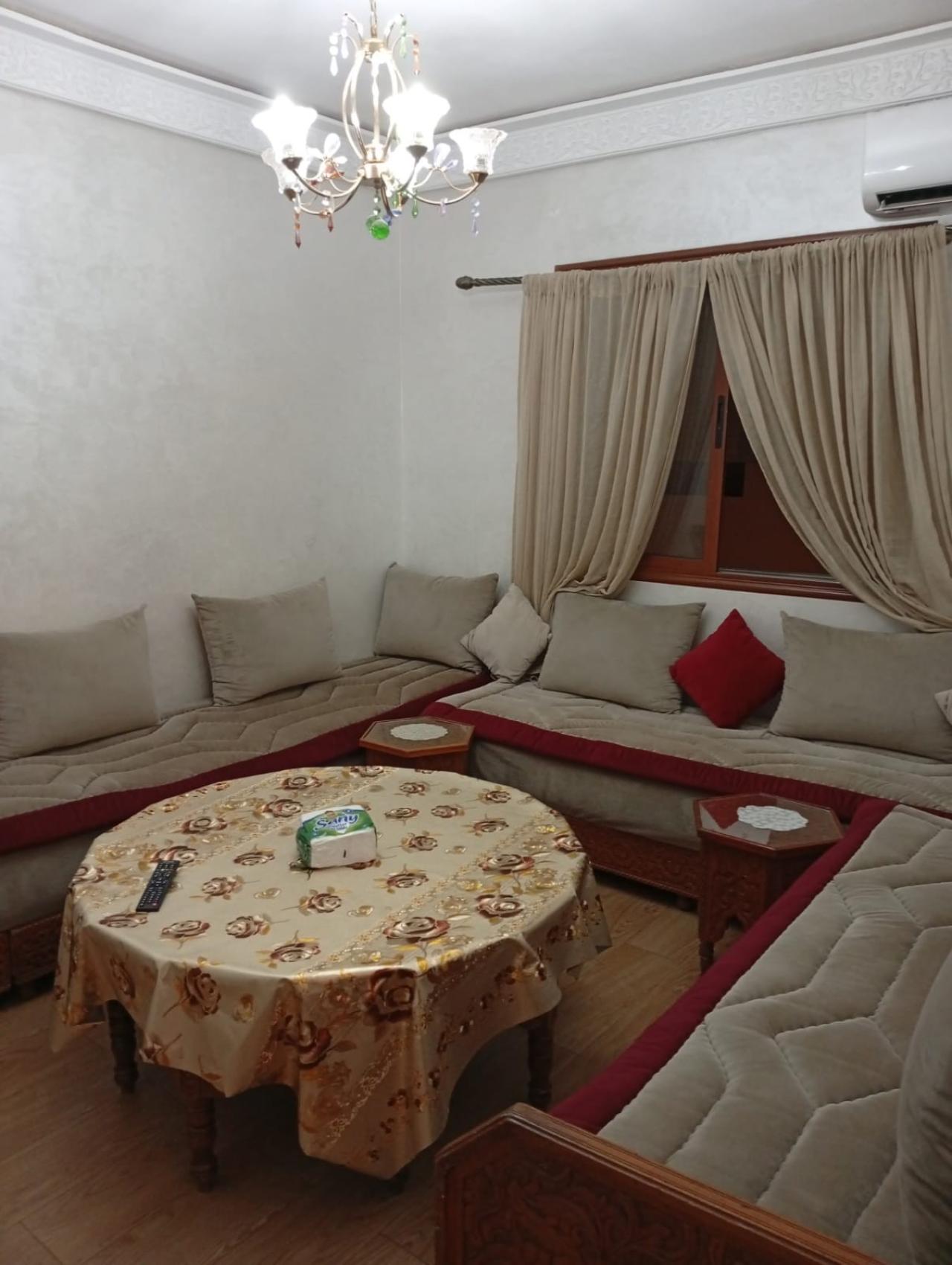 Joli appartement meublé à louer à Targa, disponible à la journée ou au mois. Il se compose de : * 2 chambres * Salon * Cui...
