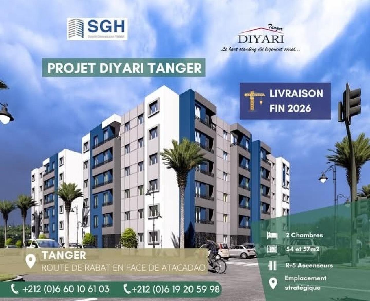 Appartement à louer – Tanger, Boukhalef. Situé au 1er étage, à proximité de l’aéroport et sur la route de Rabat, en face d’Atak...
