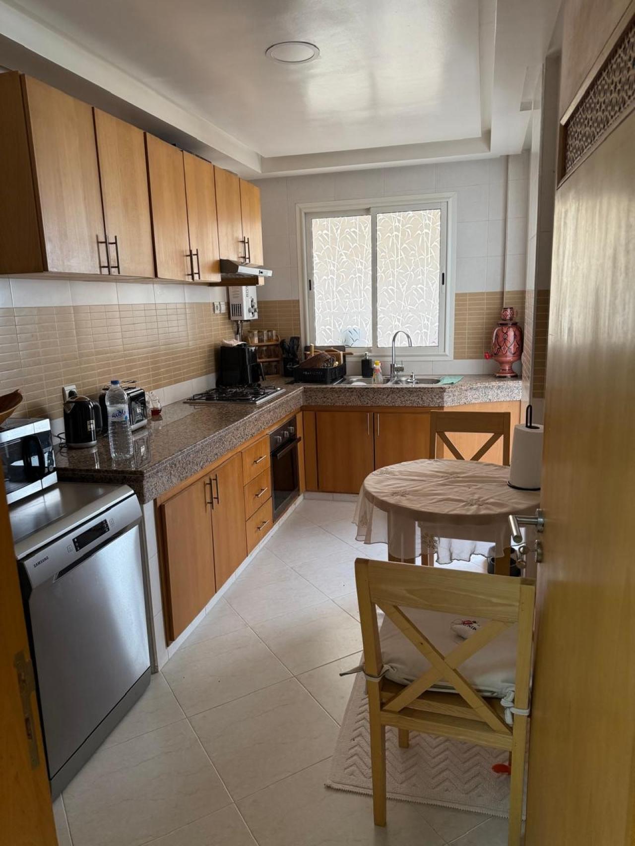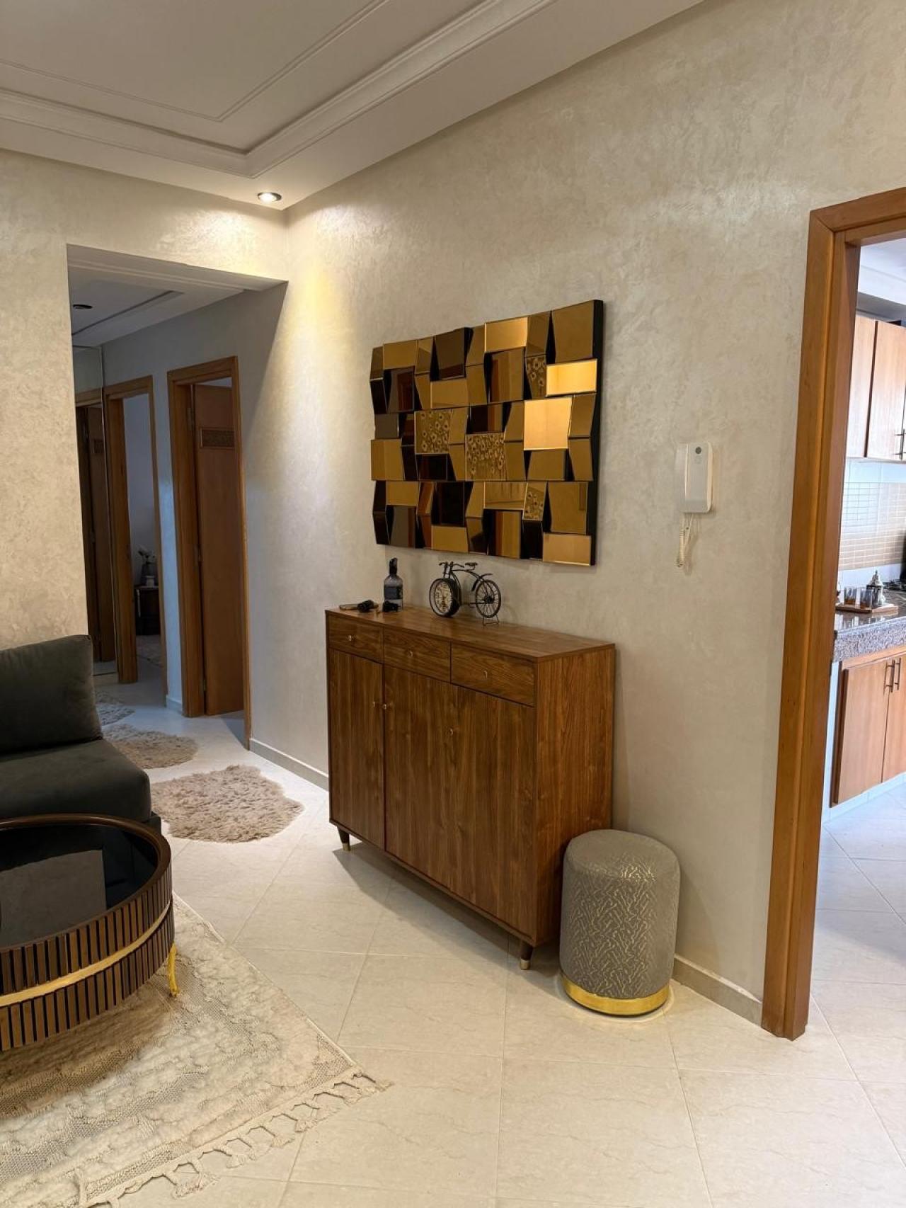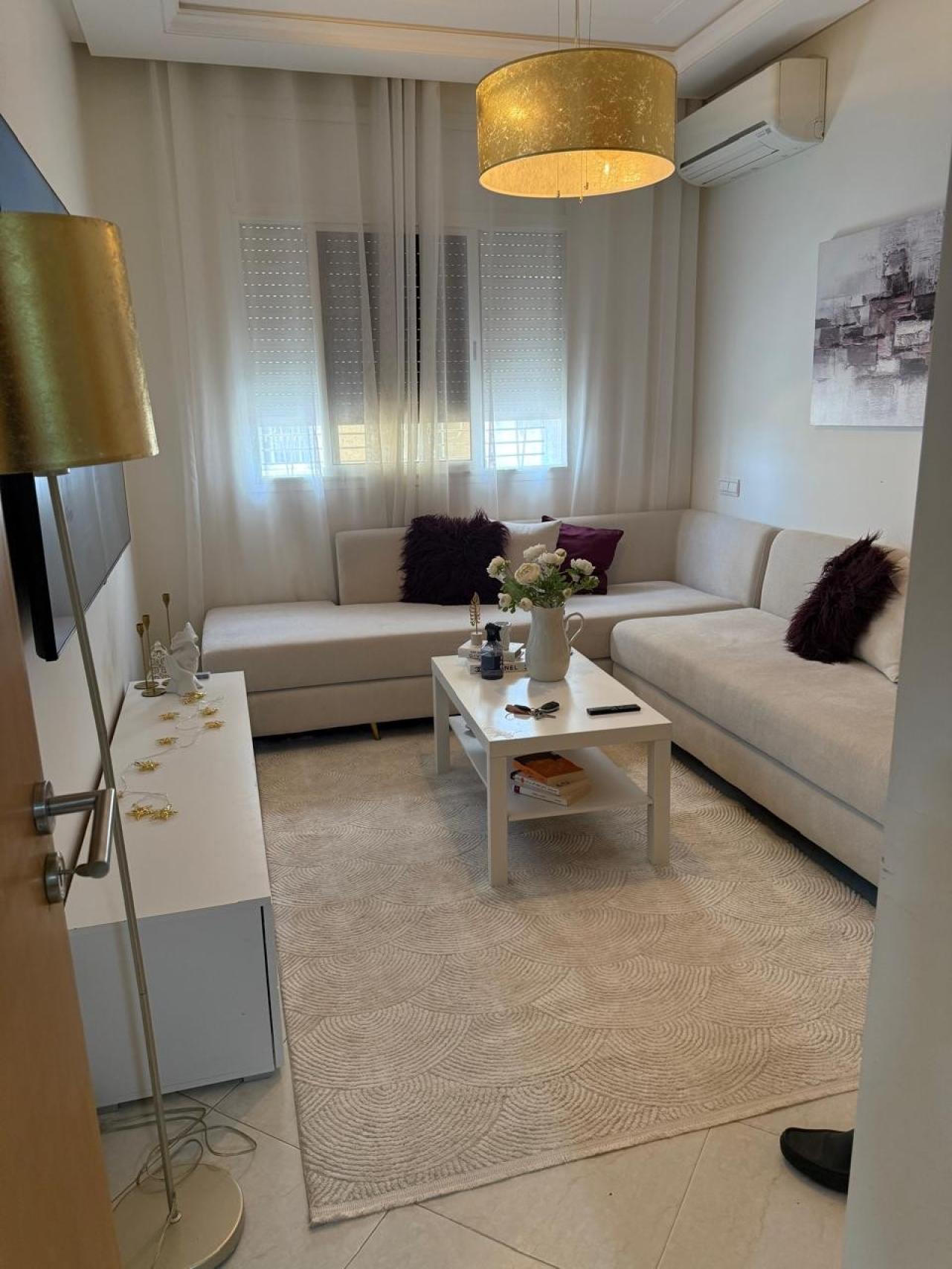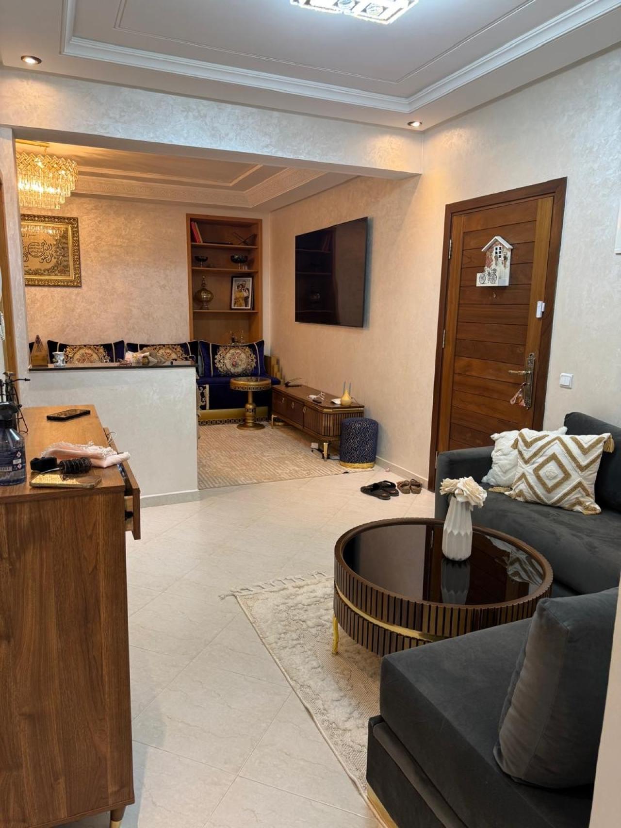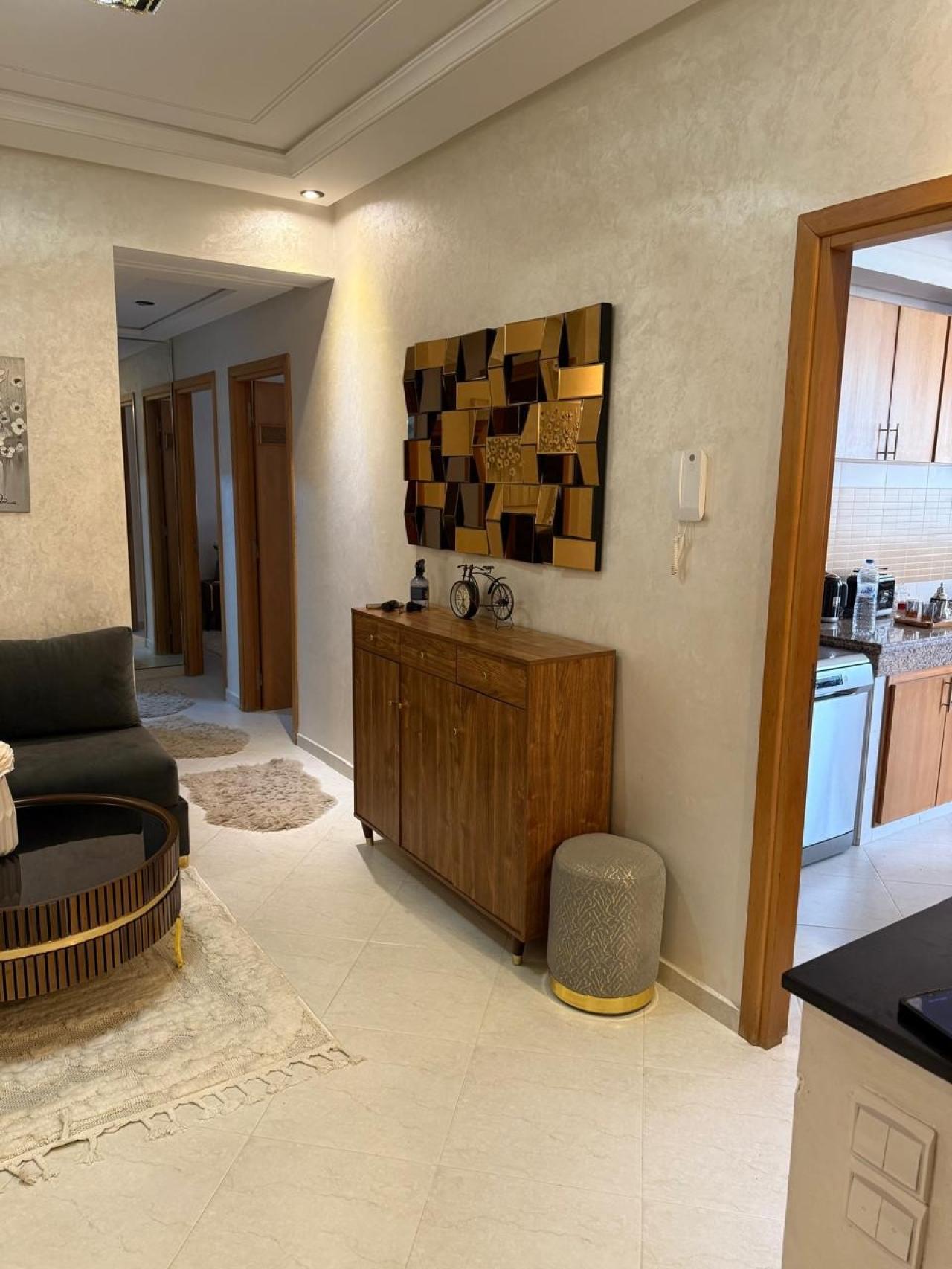 Appartement composé de deux chambres, un salon marocain avec séjour, une cuisine américaine, une salle de bain et deux toilettes. ...