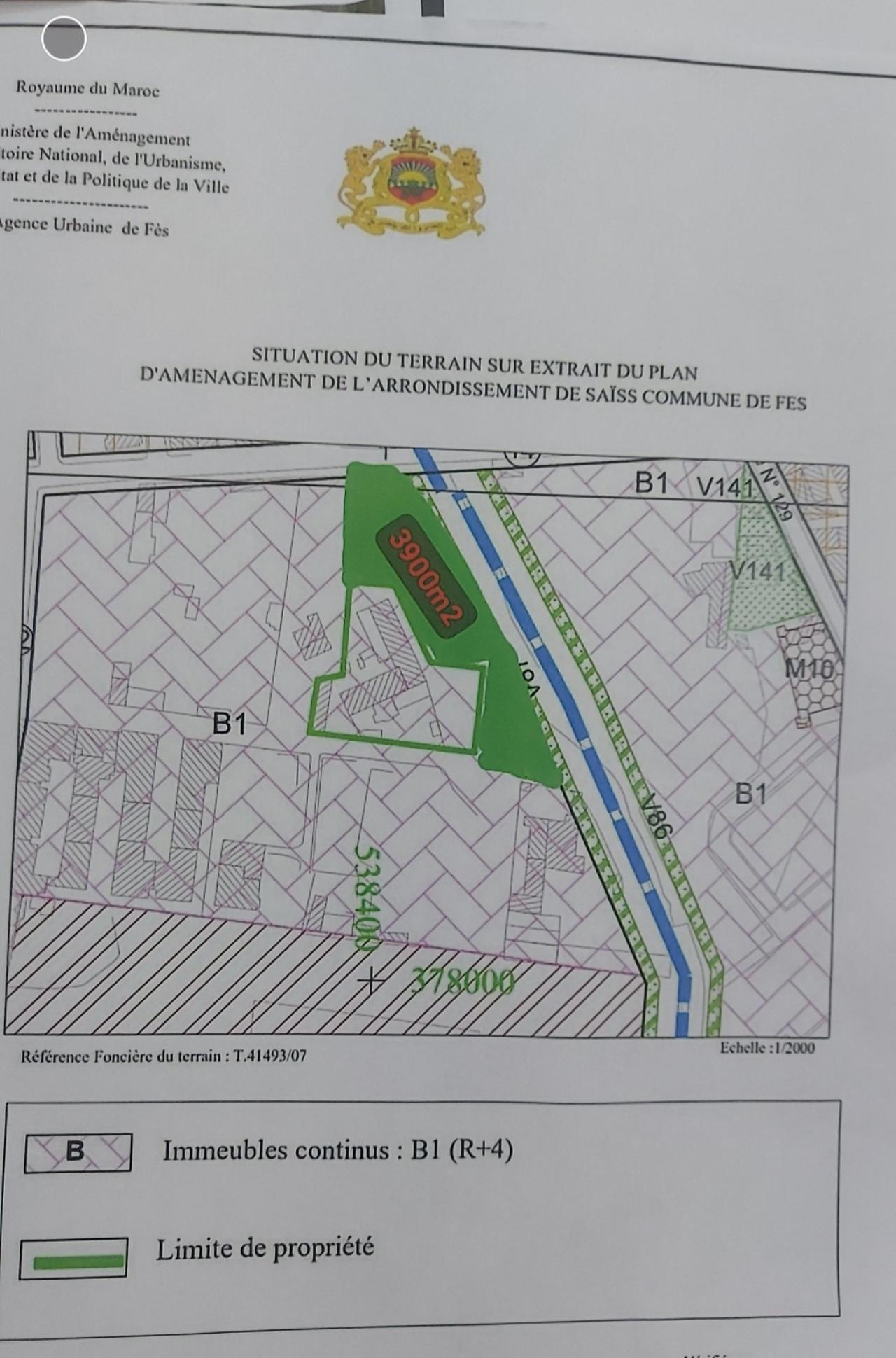 Terrain titré en vente à Fès – 3 900 m² – R+4. À vendre un grand terrain titré d’une superficie de 3 900 m², idéal pour un proj...