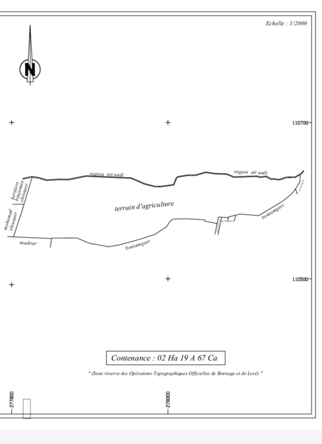 À vendre : terrain titré d’une superficie de 1 hectare et 6 000 m², situé sur la route de la forêt en direction de Bab Atlas, à 17...