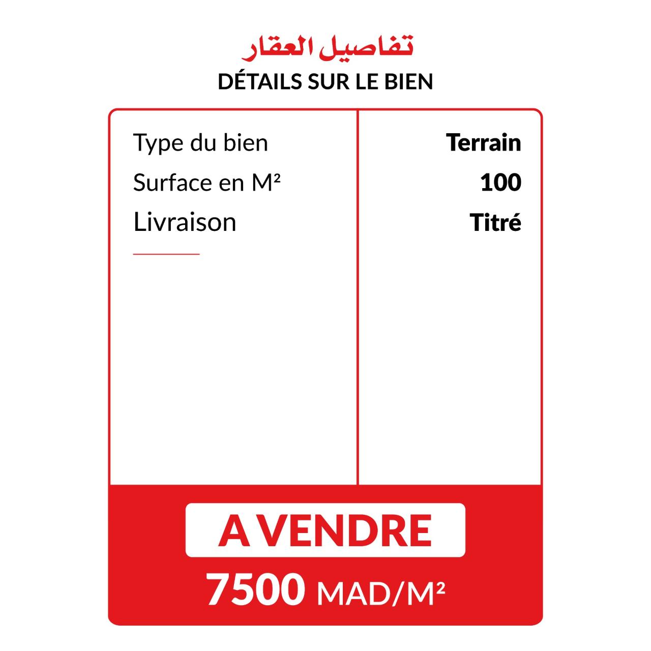 Terrain à vendre à Tanger d’une superficie de 100 m², idéal pour un projet de construction. Grâce à son emplacement stratégique...