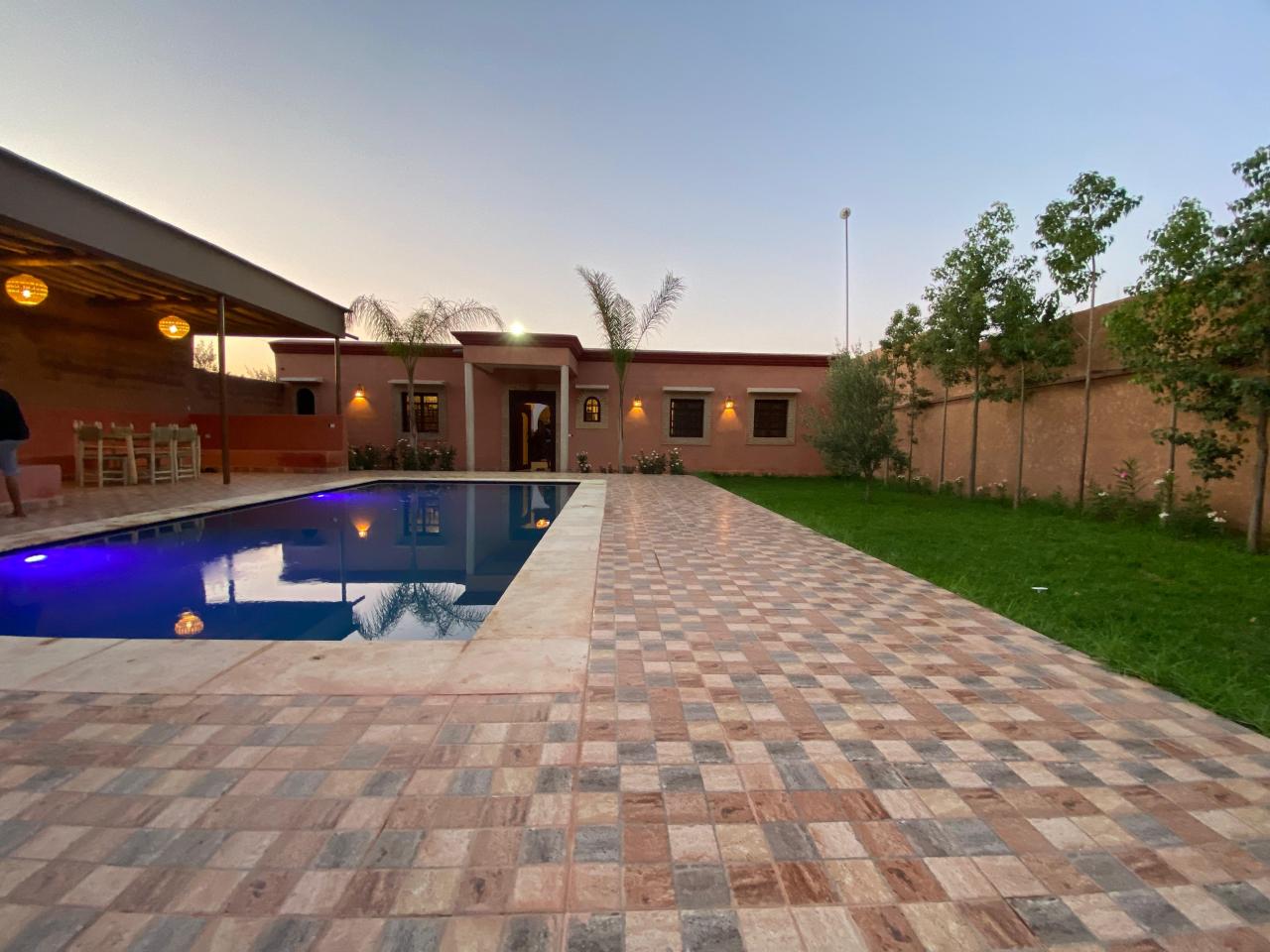 Superbe villa en location à la journée à Marrakech, sur la route de Tahnaout – location réservée aux familles. L villa se compo...